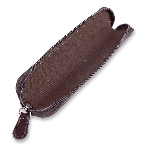 Hnědé Parker PU pouzdro na pero s barevně sladěným zipem.